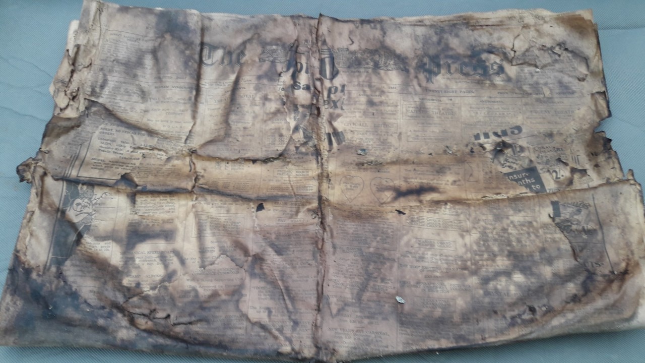 Our Team alerted the Client and were requested to remove the Time Capsule carefully. Using precision tools, they excavated the metal box, which revealed to hold old newspapers from the time. Unfortunately, the box they were in was not waterproof, so the Team have carefully put them out to dry. The Team are incredibly excited to complete the restoration of this heritage icon so they can sit down and have a read of the newspapers found in the time capsule from the time of the original builders almost dating back to 90 years today.