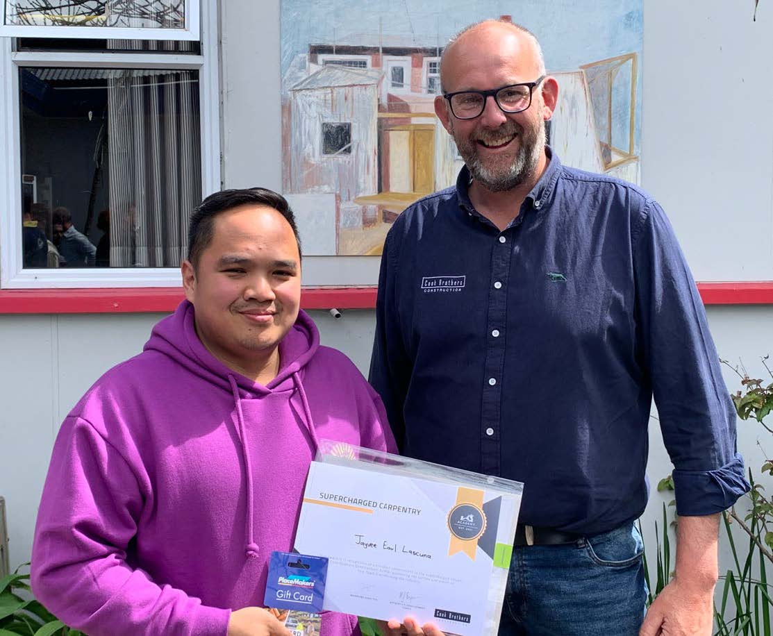 Another round of celebrations to see out the year! Cook Brothers congratulate Jayvee and Benjamin from the Otago Polytechnic, who were recognised with a Cook Brothers Supercharged Carpentry Student Award for their outstanding efforts in their pre-trade carpentry studies.