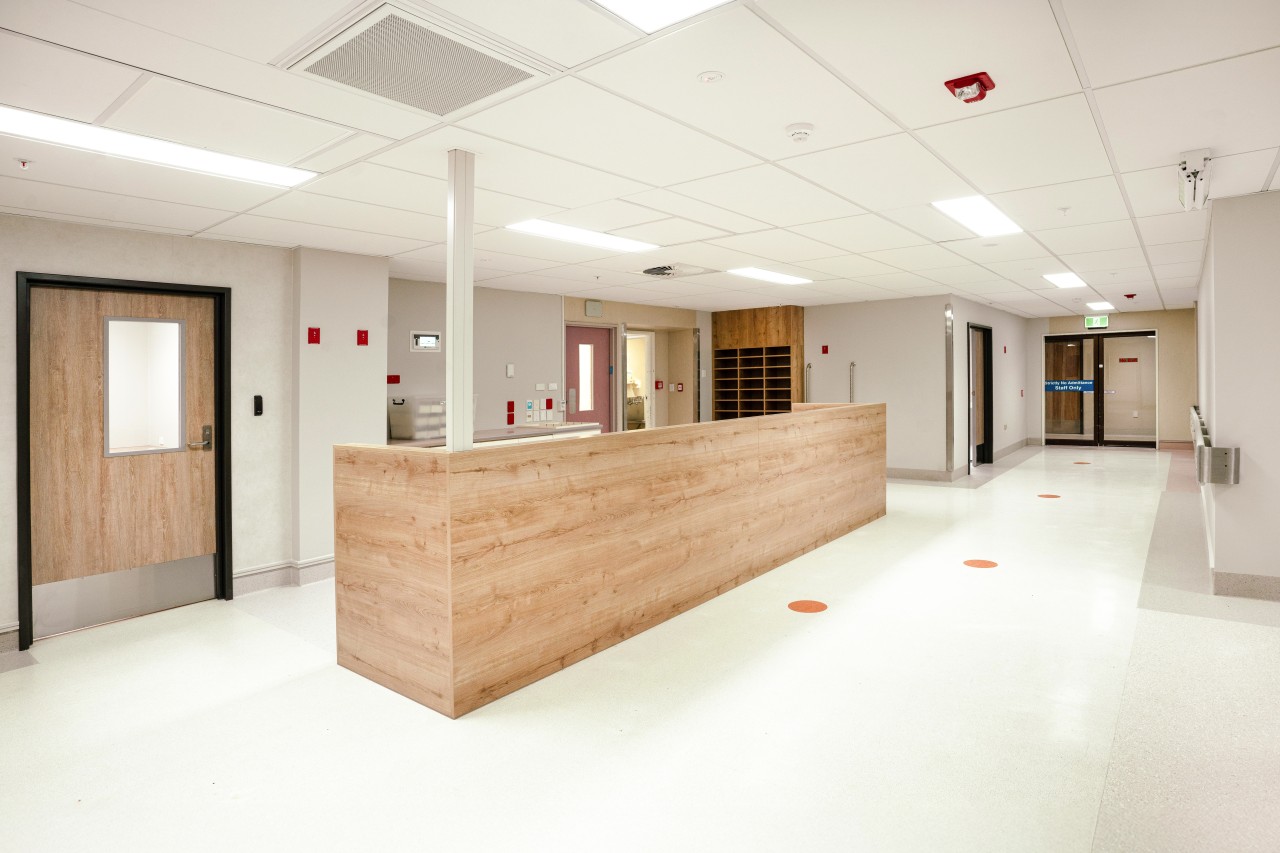 Finally, new vinyl flooring, vinyl patching, and carpet were installed to enhance durability and ease of maintenance, alongside additional hydraulic works completed for the Endoscopy unit located on level 1.