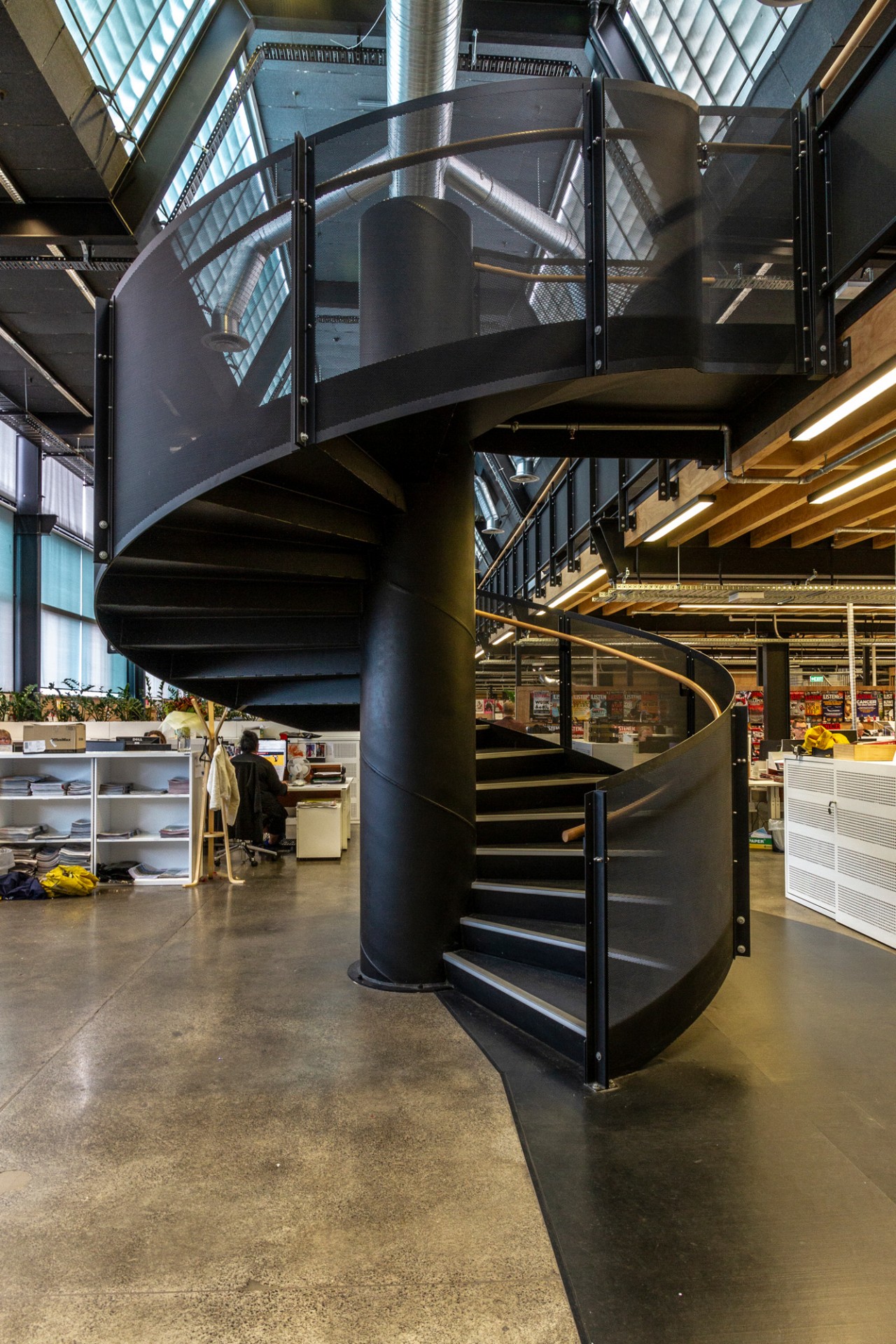 The result was an amazing open plan, split level office that included an impressive structural1,500m2 mezzanine, a number of meeting and breakout rooms with the latest tech equipment, large feature steel spiral staircases and numerous kitchen and communal areas to accommodate all staff, all while retaining the industrial feel of the original 1968 building.