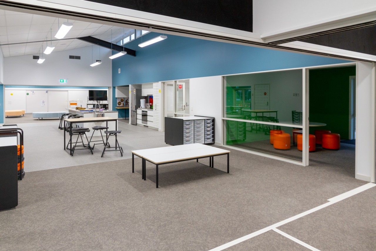 A real highlight for this build was the innovative learning space, and especially the acoustic performance of the building. Featuring a 'makerspace' with a fitted kitchen and areas for green screening, robotics and over seven different configurations for learning the space is built for engaged learning.