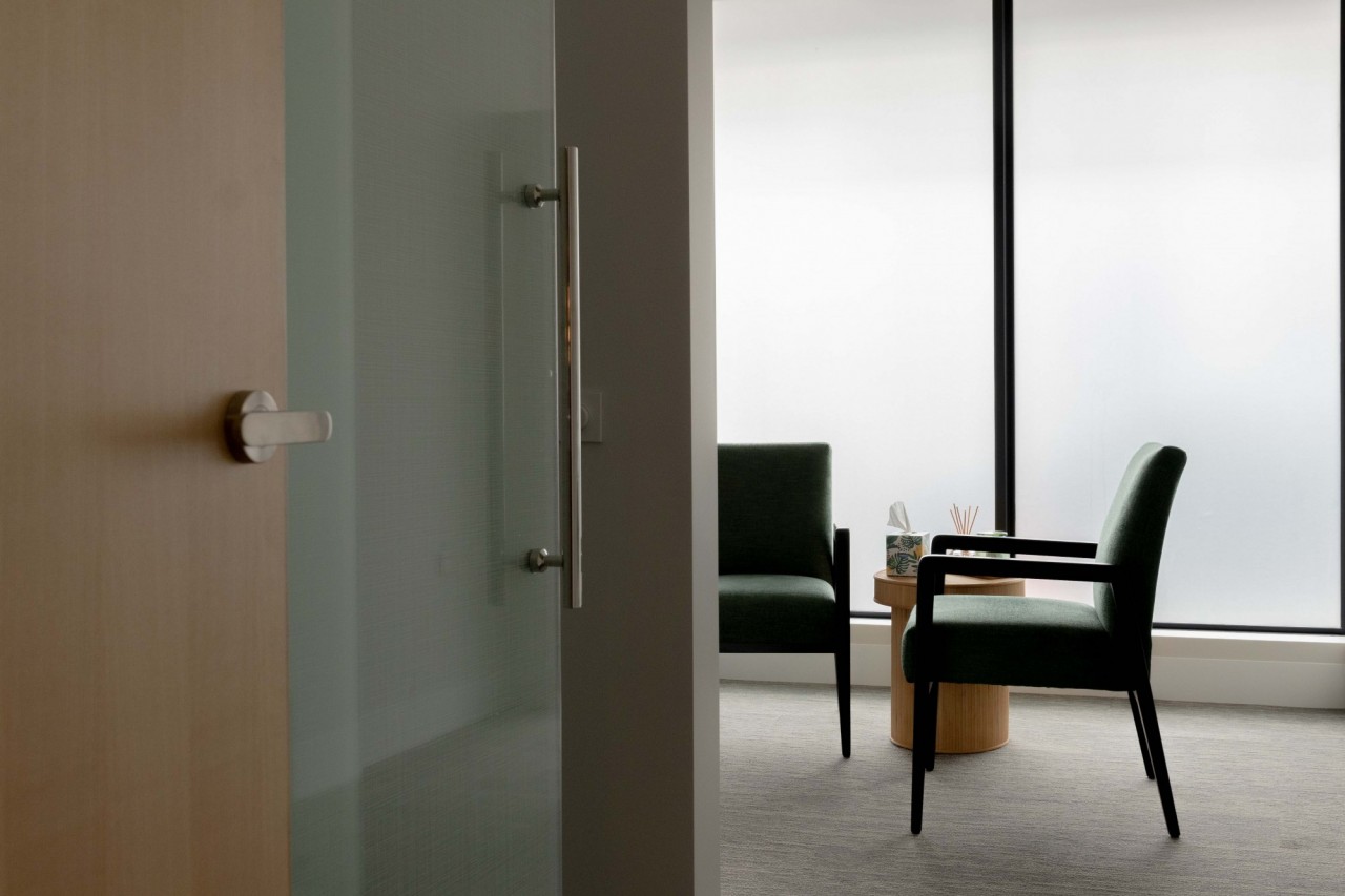 The ground floor clinic required the removal of an existing fit-out, a treatment to the existing structure, a new lift shaft bought up through the building and then partitioning erected to create the space allocation in the clinic. Patients are now greeted with a warm and generous waiting area, inviting consultation rooms, state-of-the-art treatment and procedure rooms, utility areas, and a peaceful recovery room, all looping back to the waiting area.