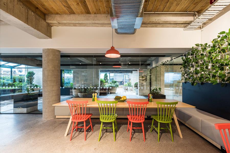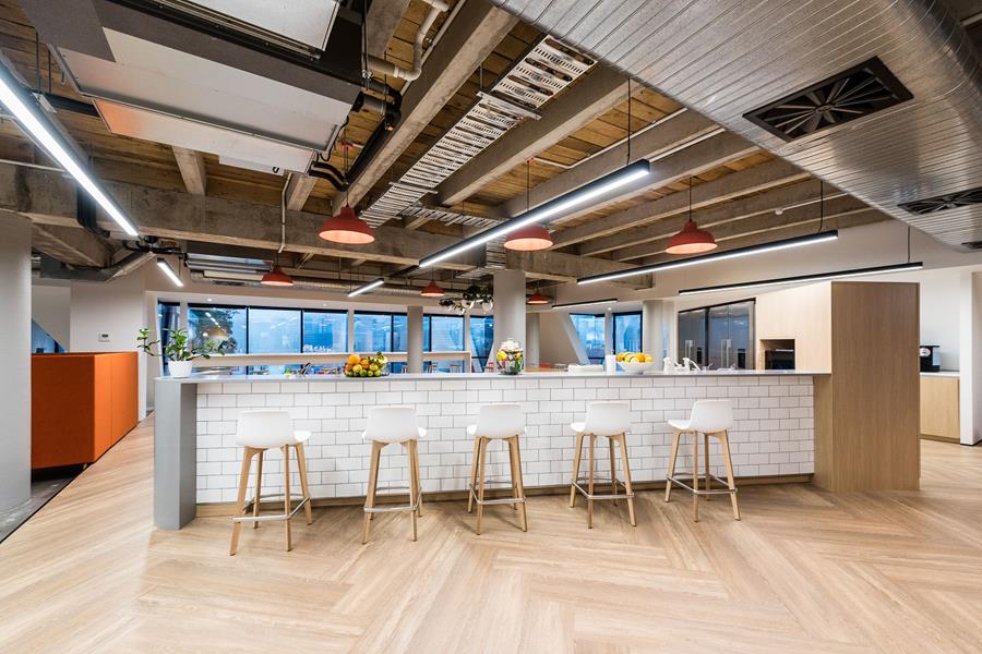 The third level hosts the office spaces which accommodate the My Food Bag’s operations, procurement, finance, marketing, digital and customer love teams. An open plan space with breakout rooms and a raised platform area which serves as a staff kitchen and gathering space.
