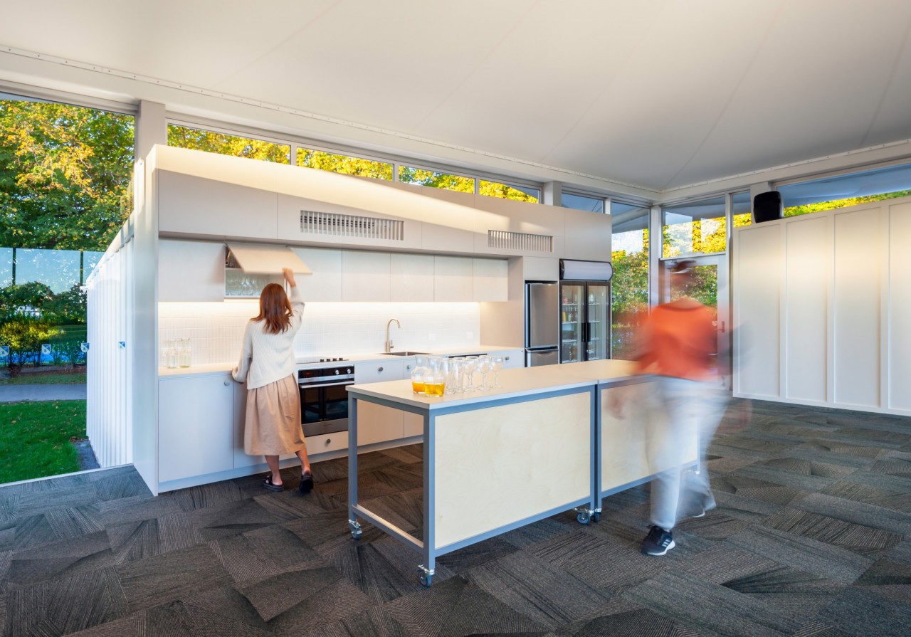 There were several challenges for this project. Firstly the project was value engineered to reduce the cost after the contract award, then the COVID pandemic and subsequent lockdown hit part way through the build, which put pressure on the programme. The physical location - in a highly built-up residential area and echo-sensitive park setting with a public interface caused the need for extra vigilance for the site team. Finally, the unique architectural design with its central mast and fabric structure challenged the delivery team, who were already under time pressure. The specialist fabric roof imported from Europe required stainless steel tie-down ropes and a specialist team flown from Auckland to conduct the installation. However, despite international procurement and inter-island Trade Partner resource challenges, the team kept to the programme and delivered a high-quality finished product.
