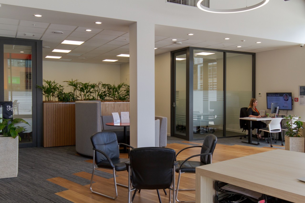 The joinery elements and ceiling features were particularly challenging due to the various changes to adhere to new passive fire regulations. However, these elements and features are visually interesting and have resulted in an exciting corporate customer space.