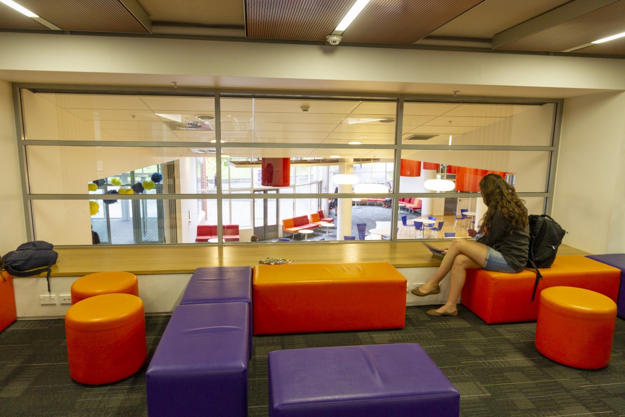 The upgrade provides an improved connection between the Information Services Building Link, the main common room, food court, and Union lawn. The work included opening up the busy ground floor concourse. An informal study and social space were also created on the mezzanine level.